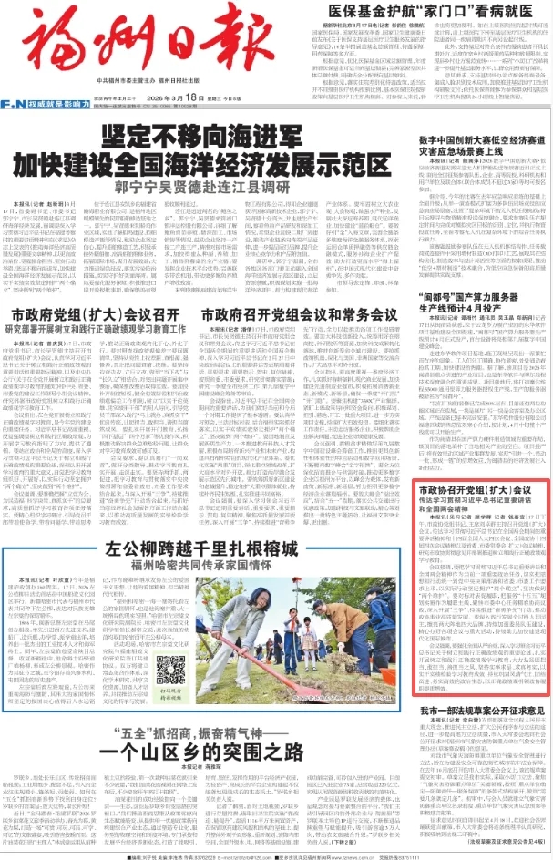 福州日报|市政协召开党组(扩大)会议 传达学习贯彻习近平总书记重要讲话和全国两会精神