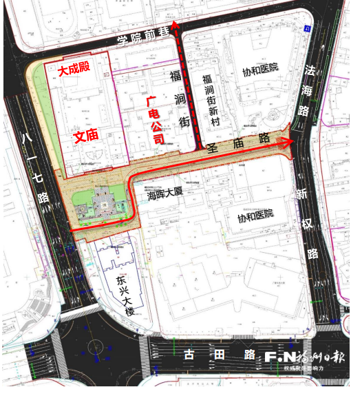 圣庙路改造后通行示意图。(福州城投集团供图)