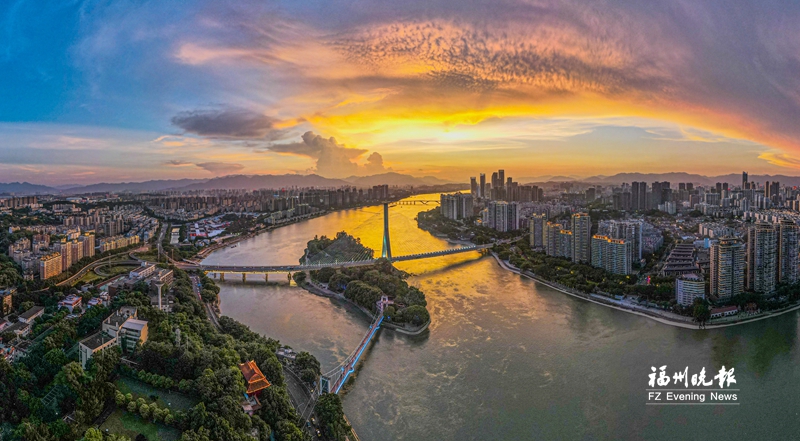 夕阳下的闽江。
