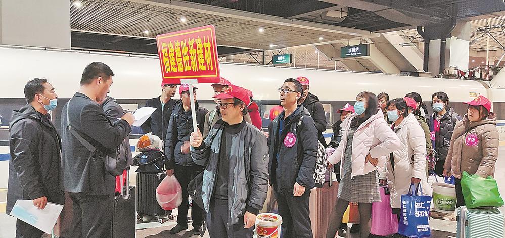 21日晚10时许,随着从甘肃定西驶来的G1901次列车抵达福州火车站,今年福州市组织的首趟免费返岗高铁完成输转任务,为福州企业接回530名务工人员。他们出站后,直接坐上了前往各县(市)区重点企业的大巴车,实现了从家门到厂区的“点对点”免费、直达返岗。