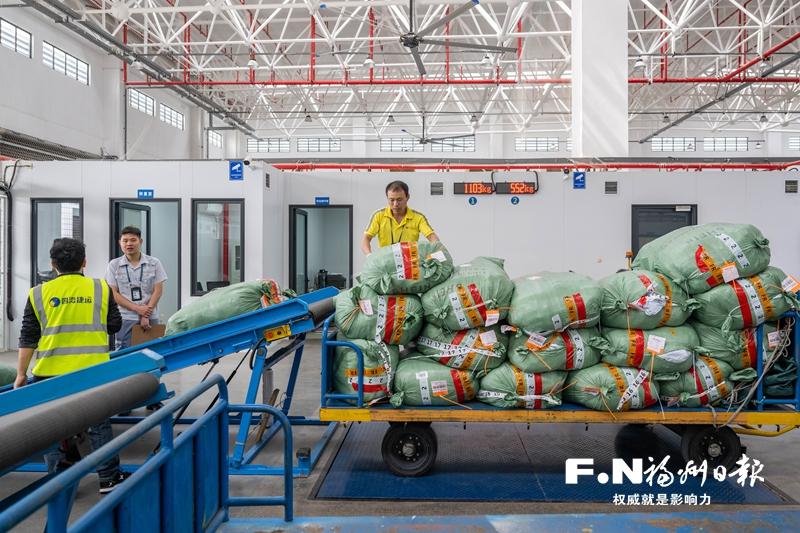 长乐机场综保区跨境电商监管中心内,工作人员在分拣货物。记者 林双伟 摄
