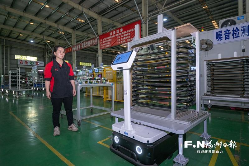明芳公司的智能搬运机器人正在运送物料。记者 林双伟 摄