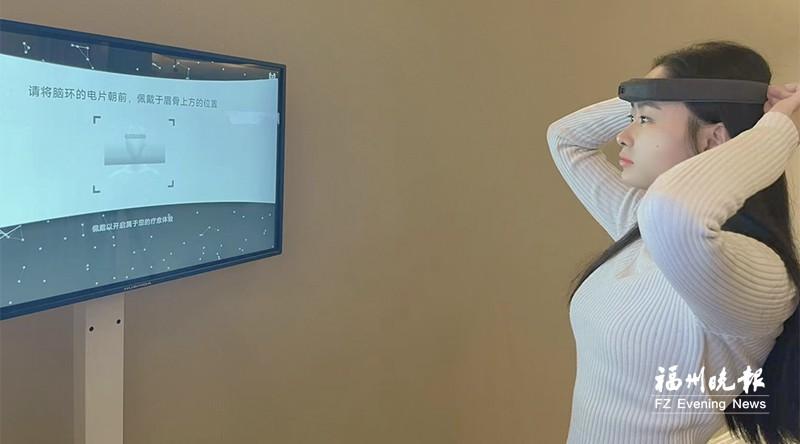 星网视易工作人员佩戴脑环体验脑机AI情绪评估。受访者供图