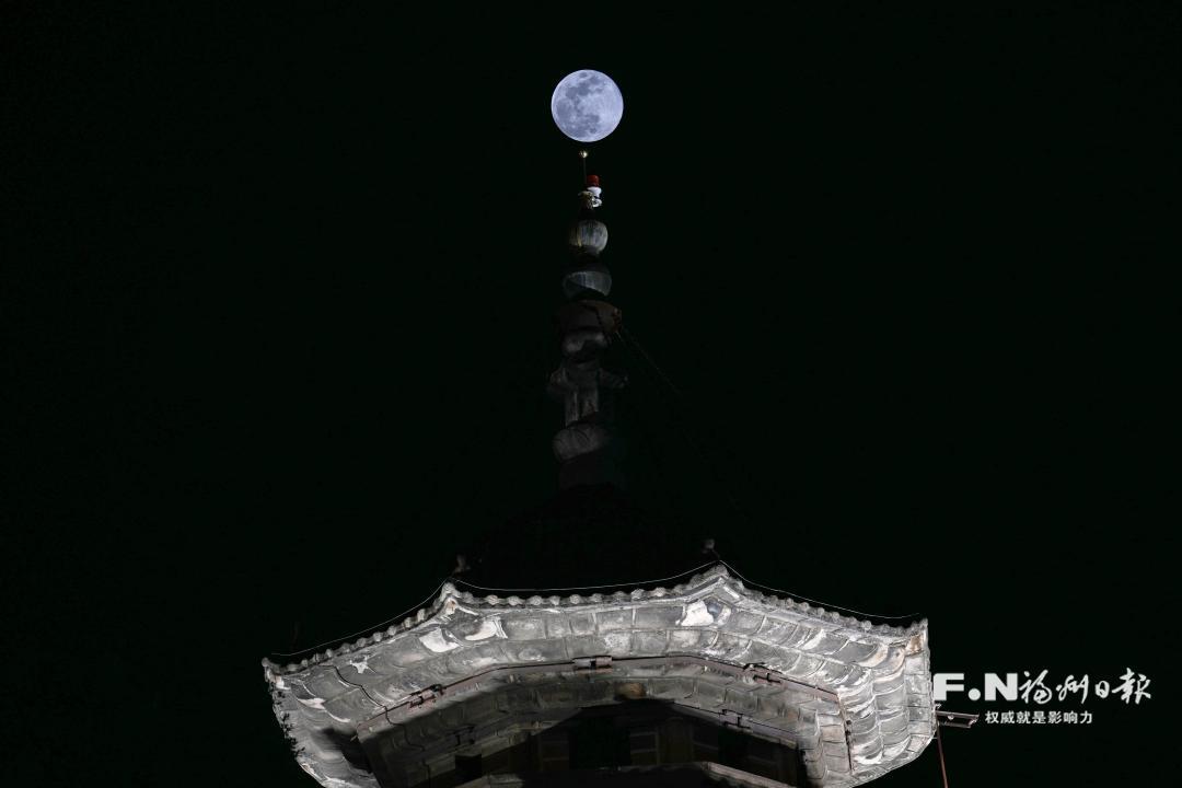 当晚的福州,因这轮“超级月亮”更显温柔。圆月悬于福州古厝的青瓦白墙间,与百年马鞍墙温柔相拥,在塔尖、在枝头,静静洒下清辉。