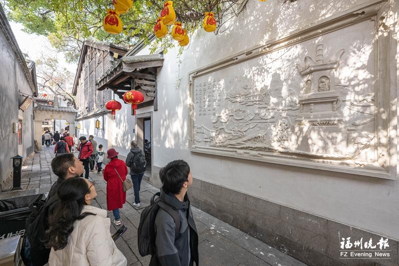 为唤醒历史记忆,福州市文物局于2月1日启动墙画施工,精选工匠运用福州传统灰塑技艺,历时11天完成创作。灰塑是闽派建筑的重要装饰,常见于三坊七巷众多古厝。