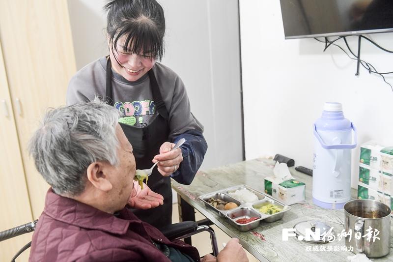 罗源县社会福利中心护理员给失能老人喂饭。通讯员 刘其燚 摄