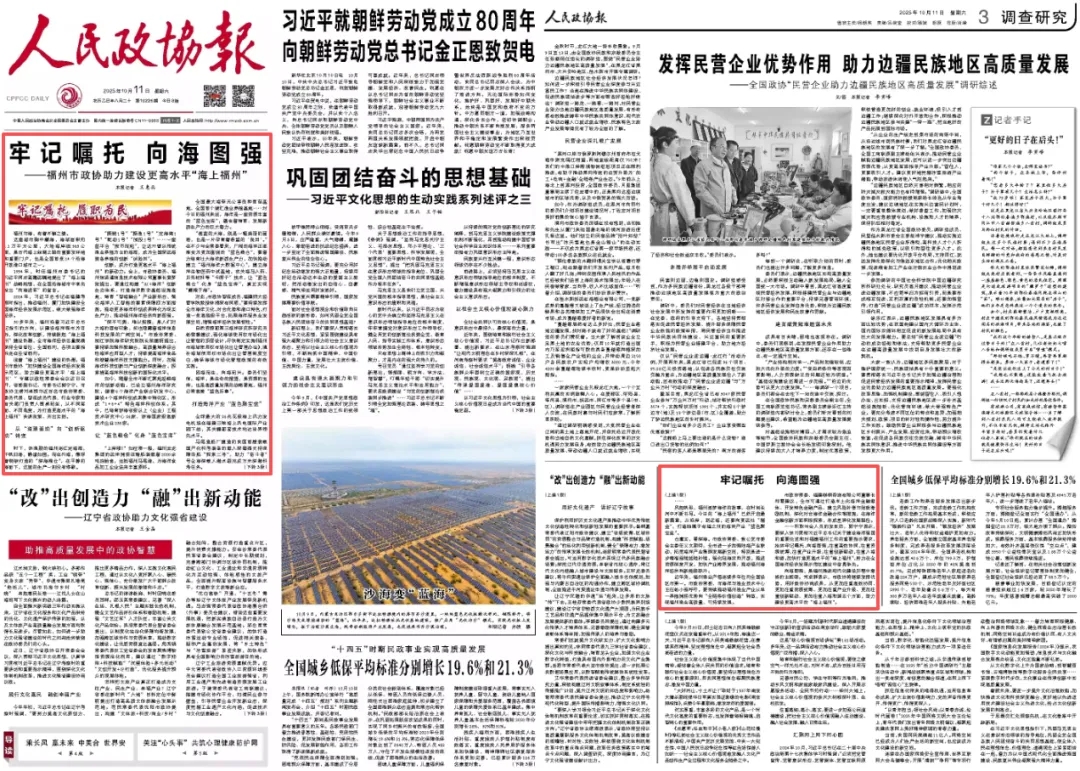 人民政协报·头版头条|牢记嘱托 向海图强——福州市政协助力建设更高水平“海上福州”