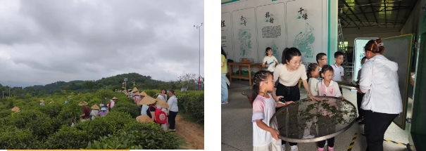 亲子茶山研学时,家长与孩子共同识茶、采茶,体验茉莉花茶窨制工艺,感悟非遗匠心。