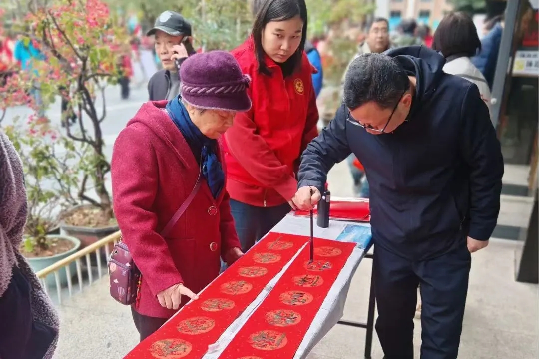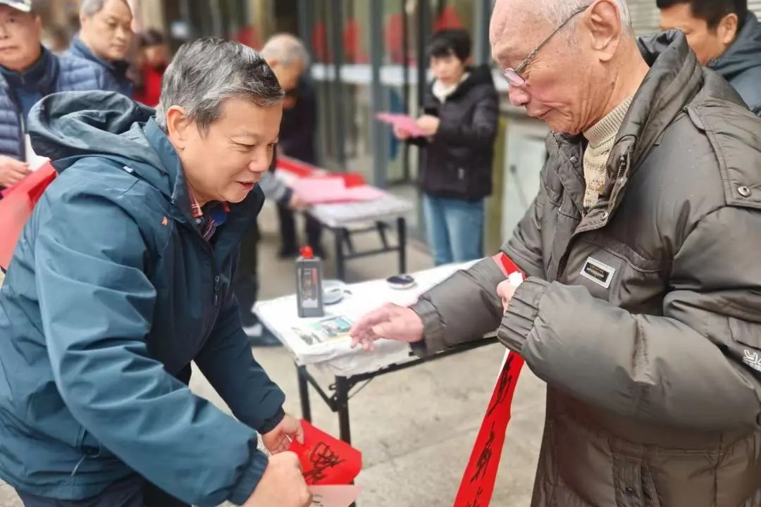 为弘扬中华优秀传统文化,营造喜庆祥和的节日氛围,1月30日上午,福州市政协机关积极响应共建社区——汤边社区号召,邀请市政协书画院的书法家们前往开展“骏岁聚邻里,幸福汇汤边”志愿活动,现场挥毫泼墨,为社区居民免费书写春联和“福”字,把浓浓的年味和新春祝福送到群众家门口。