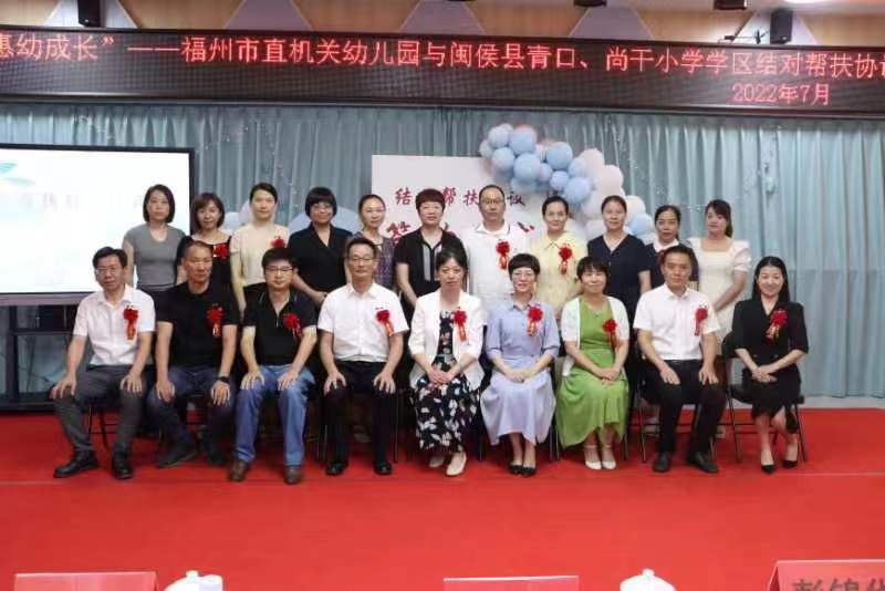活动现场,福州市直机关幼儿园与闽侯县青口、尚干小学学区举行了结对帮扶启动仪式,市政协委员、市直机关幼儿园园长黄凡与学区代表签订了《结对帮扶协议书》,并进行了重点帮扶园现场授牌。市妇联、市政协教科卫体委、闽侯县政协、闽侯县教育局有关领导参加活动。