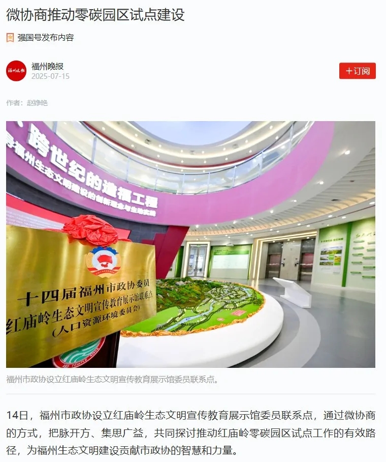 福州市政协设立红庙岭生态文明宣传教育展示馆委员联系点。