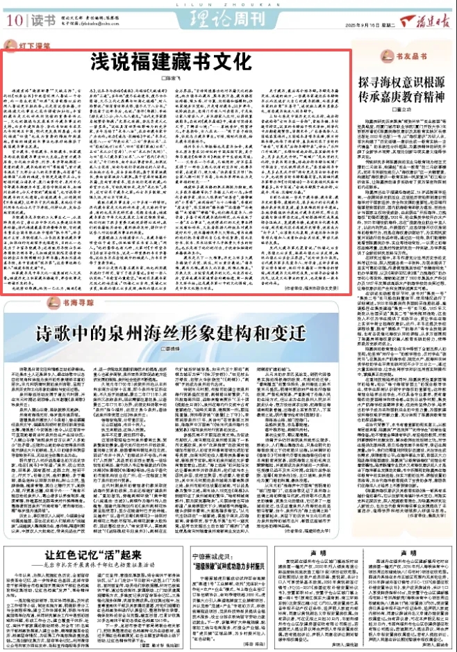 能致力藏书事业者,心中多有一种情怀。历代藏书家是文化的传承者,是文脉的守护者,有的也是历史研究者、思想启迪者。福建藏书家在中华文化发展史上有过特殊贡献,他们刊刻了很多重要文献使其得以流传。我们的典籍经历浩劫,最终保存完好,得归功于这些人对这份藏书事业的热爱。