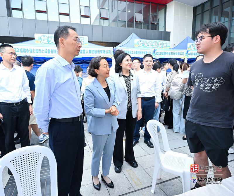 会后,郭宁宁、吴贤德来到福州大学2025届春季高校毕业生专场招聘会现场,开展“书记市长送岗留才进校园”活动,与求职学子亲切交流,勉励大家树立正确择业观、就业观,找准职业定位和奋斗方向,在与时代同向同行中实现人生理想;要求相关部门和用人单位扛起稳就业责任,创新线上线下招聘模式,拿出更多优质岗位吸引各方英才好年华聚福州。