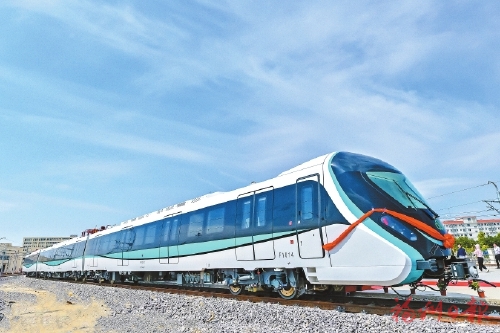 首列福州滨海快线列车在福州地铁文岭车辆段接车。