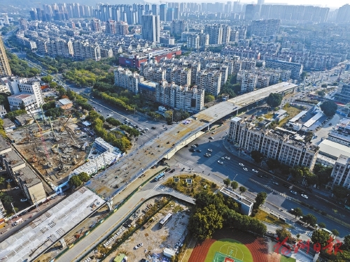 前横路快速化改造工程中的福马高架段实现跨路口贯通。记者 陈暖摄