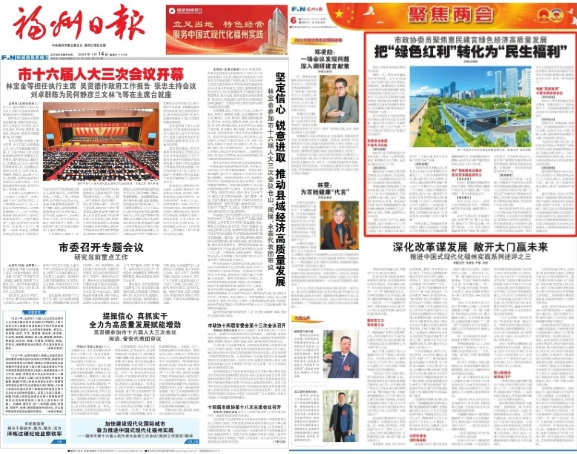 福州日报|市政协委员聚焦惠民建言绿色经济高质量发展——把“绿色红利”转化为“民生福利”