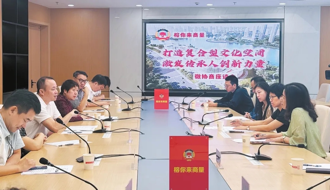 在“打造复合型公共文化空间,激发传承人创新力量”微协商座谈中,市政协领导、政协委员、非遗传承人等集思广益,助力非遗传承人入驻福州市文化馆新馆名师工作室,并联手打造复合型公共文化空间。