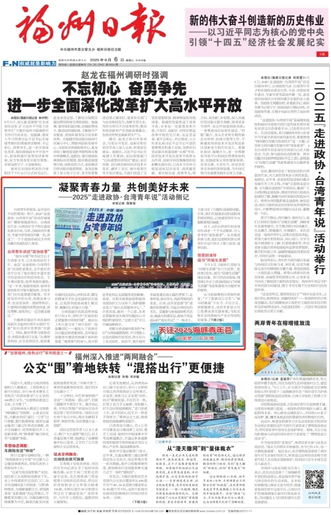 台湾青年看政协,是否会有不同的视角?昨日,2025“走进政协·台湾青年说”活动在福建省广播影视集团举办。台湾政党代表、台湾青年学子和在闽创业就业台青,与省、市政协青年委员、专家学者等嘉宾齐聚一堂,讲述了一个个政协协商民主中两岸融合发展的动人故事。