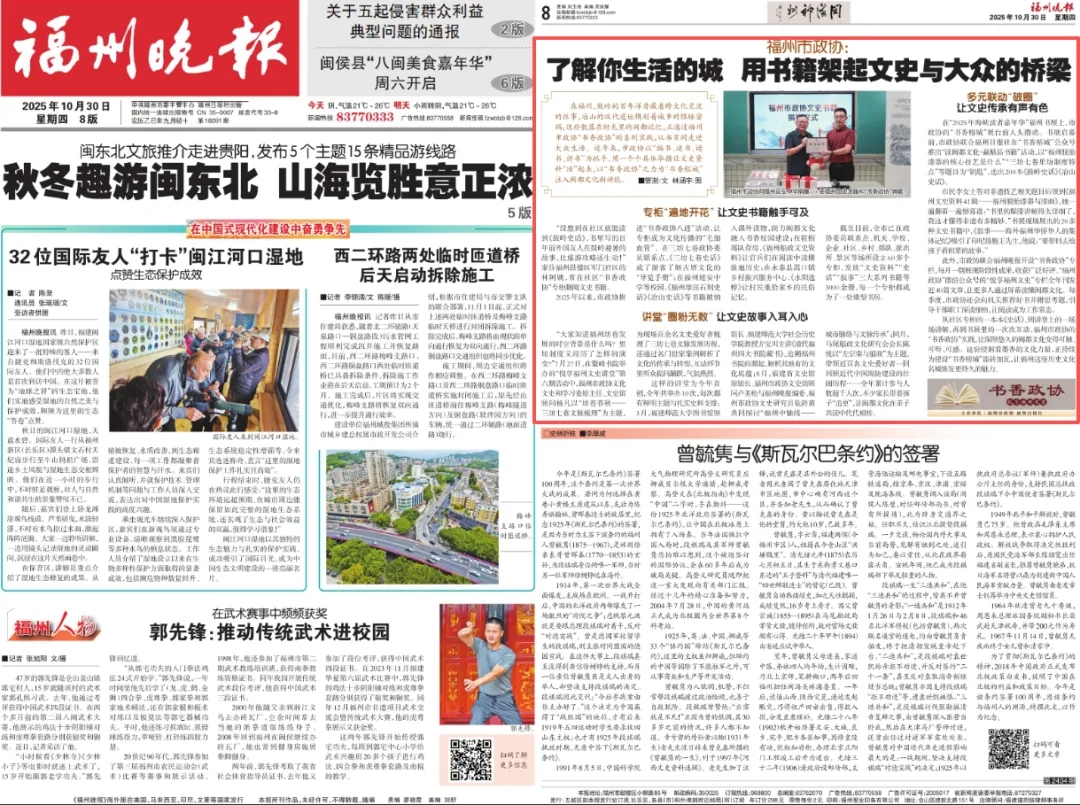 在福州,鼓岭的百年洋房藏着跨文化交流的往事,冶山的汉代遗址镌刻着城市的根脉密码,这些散落在时光里的闽都记忆,正通过福州市政协“书香政协”的系列实践,从书页间走进大众生活。近年来,市政协以“编书、送书、读书、讲书”为抓手,用一个个具体举措让文史资料“活”起来,以“书香政协”之力为“书香榕城”注入闽都文化新动能。
