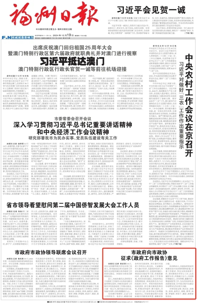 福州日报|市政府向市政协征求《政府工作报告》意见