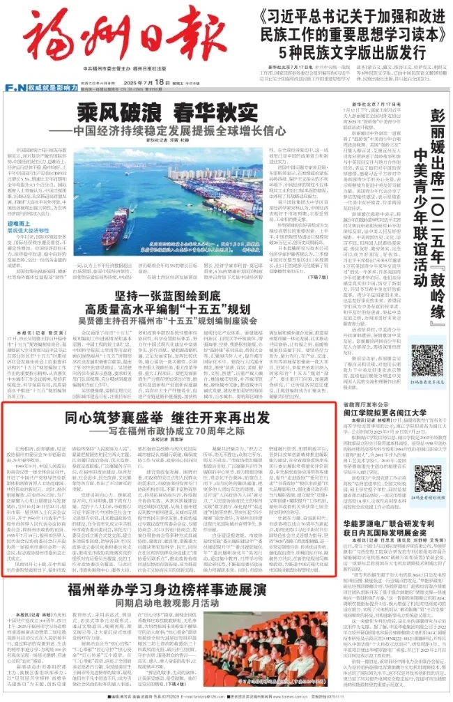 福州日报·头版|同心筑梦襄盛举 继往开来再出发——写在福州市政协成立70周年之际