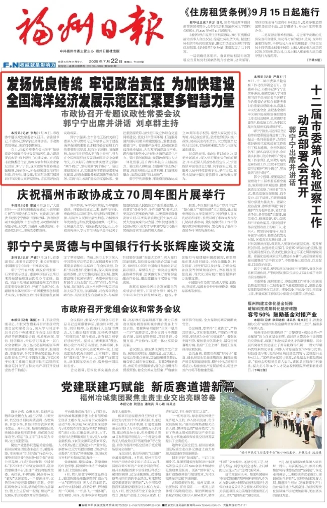 福州日报·头版|市政协召开专题议政性常委会会议 郭宁宁出席并讲话 刘卓群主持
