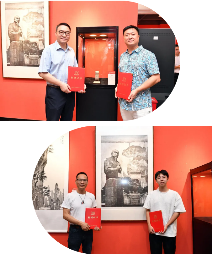 仪式上,主办方向参展书画家代表颁发了参展证书。郑幼林、程由军的寿山石雕作品《虎门销烟》和檀俊灶、檀于岳的版画作品《林则徐》捐赠给林则徐纪念馆。