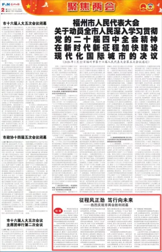 福州日报·社论|征程风正劲 笃行向未来——热烈庆祝市两会胜利闭幕