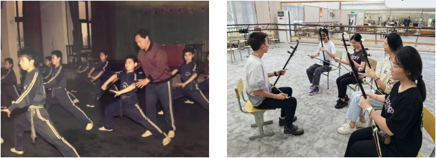 我有幸成为恢复招生后的首批学员,在良好的教学环境中,系统学习闽剧的唱念做打、程式技巧。老一辈艺术家倾囊相授,将毕生所学毫无保留地传给我们:郑奕奏先生的传人教我们旦角眼神的“神采之要”,需注视香头训练灵活转动;刘小琴先生的弟子传授“晕步”等创新程式,教导我们“技术是死的,角色是活的”,要从生活中汲取养分;闽剧著名琴师也时常到校手把手指导我们闽剧主胡的演奏技巧,叮嘱我们“闽剧音乐是灵魂,既要守住逗腔、江湖调的韵味,也要与时俱进”。求学期间,我经历了从演员到主胡演奏员的转型,变声期的困扰曾让我一度消沉,但想到嘱托和前辈们的期盼,便咬牙坚持每天练琴6小时以上,指尖磨出厚茧,终于练就了扎实的演奏功底。